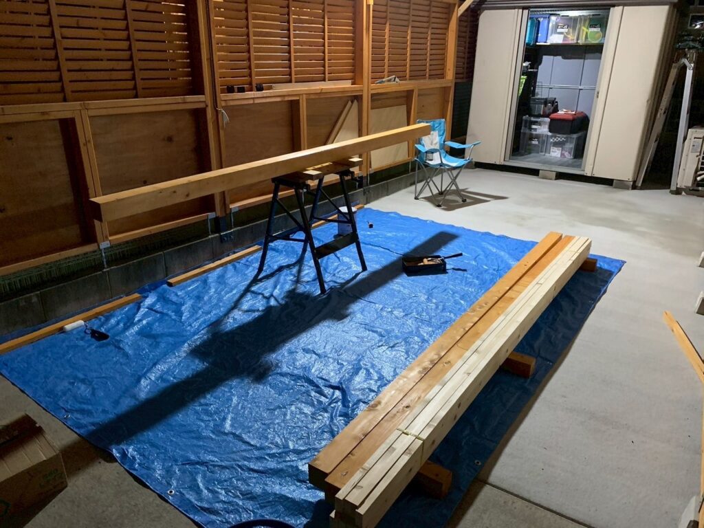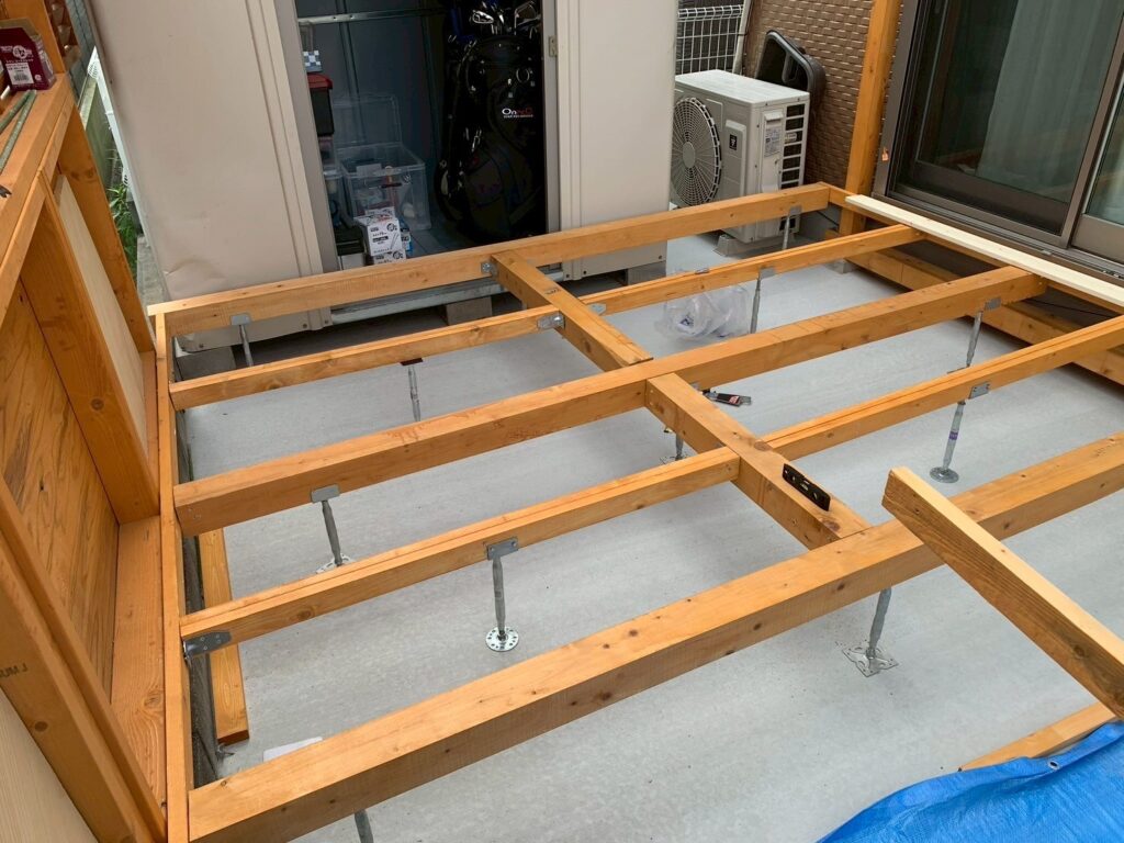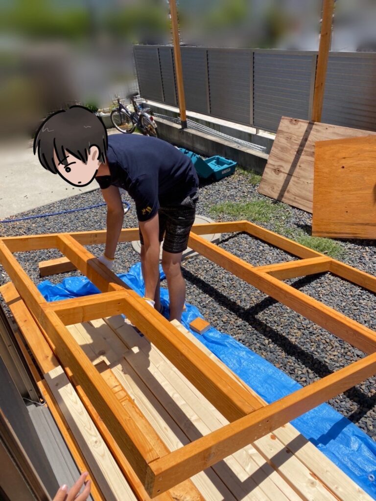 骨組みやデッキ部分は近所のホームセンターで購入した2×4材や1×4材を使用。