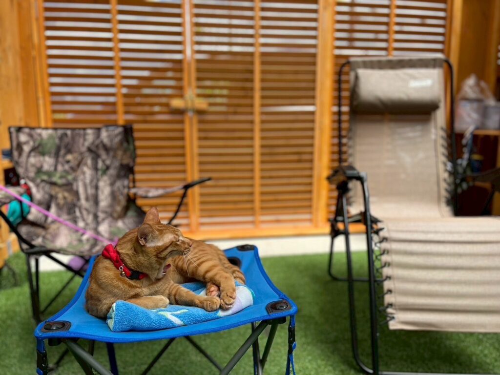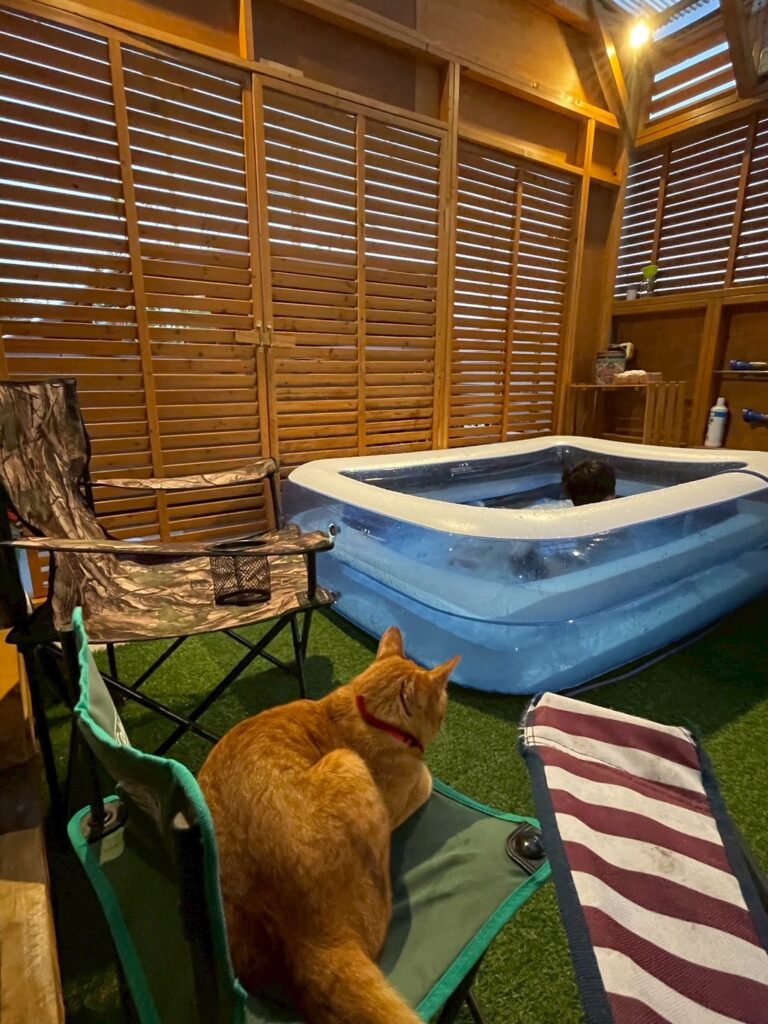 完全にフェンスで囲まれているので、我が家の茶トラ猫「うに」も一緒に外で遊べるようになりました。家族みんなでBBQを楽しむ姿は最高の癒しです。