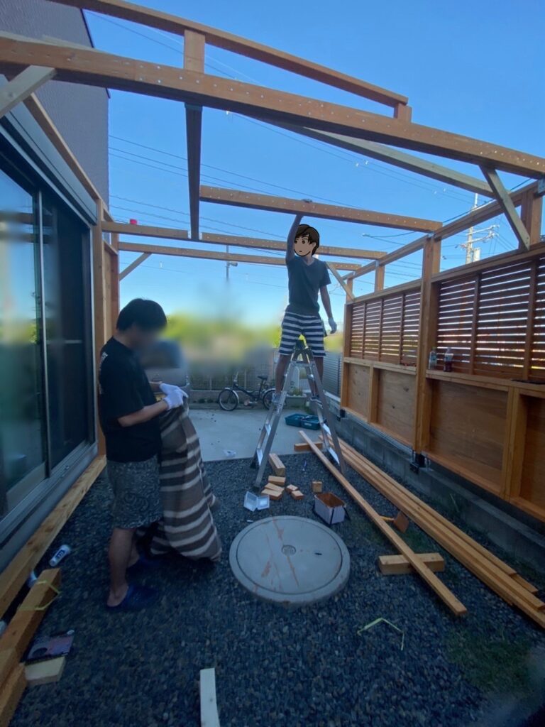 結果的に総額50万円近くの金額と3か月近くのDIY期間はかかりましたが何よりも自宅で快適なアウトドア空間が出来た事と夏の猛暑の中での草むしりから解放された事や屋根があることにより雨が降ってもBBQやプールをしたり外に物を置いておいても濡れない空間を作れたことに大満足しております。実際にプロに全ておまかせで外構工事をしてもらおうと思うと2倍から3倍の金額が必要になるので大変ではありましたが