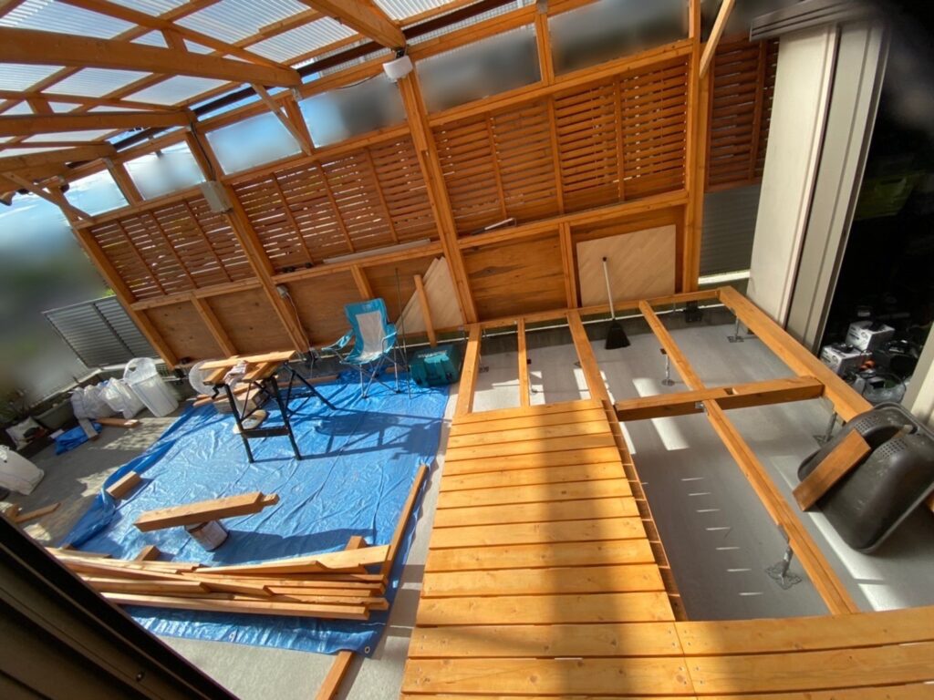 屋根と壁が完成したのでいよいよウッドデッキのDIY開始です!