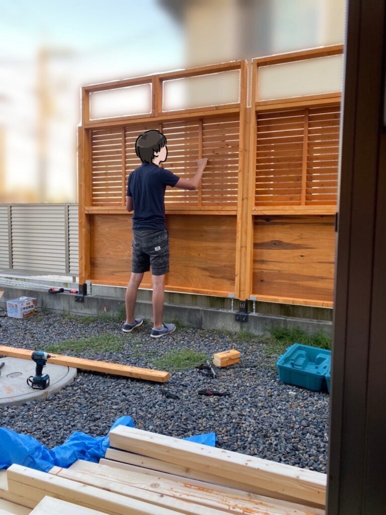 仕上げにはラティスフェンスを組み合わせる事によって既製品の感じが出てしっかりとしたお洒落な目隠し空間を作りました。