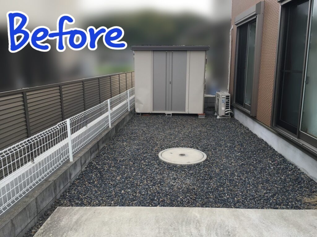 もともと我が家の庭は砂利敷で、物置がひとつポツンと置いてあるだけ。夏場は虫が出て草が生えてくるたびに草むしりをしなければならず、正直「面倒な庭」という印象がありました。