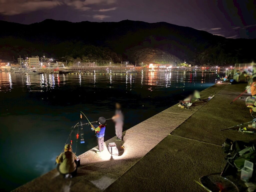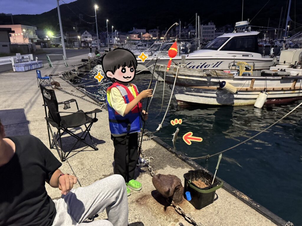 常夜灯にアジなどの小魚が寄ってくるので船が無いところではアジングやちょい投げ釣りなどを夜釣りで楽しむ事も出来るので子供も昼夜問わず釣りを目いっぱい楽しむ事が出来ました!