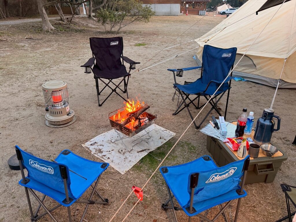 焚き火はあくまで補助的な暖房と考え、ストーブや防寒着と組み合わせて使うことで、快適さが大きく向上します。