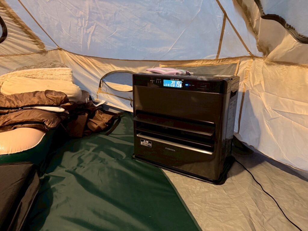 適切な換気と安全対策を行えば、石油ファンヒーターは冬キャンプの快適性を大きく高めてくれます。テント内がしっかり暖まり、外との温度差を楽しめるほどでした。