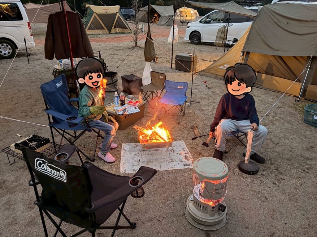 焚き火があることで、ただ椅子に座って炎を眺めるだけでも十分な時間になります。スマホを触らず、家族で他愛のない話をする――冬キャンプならではの贅沢な過ごし方だと感じました。