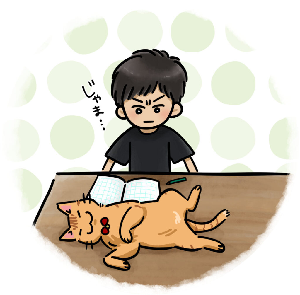 『うんちゃん、可愛いんやけど…。宿題やるとき上に乗っかってくると邪魔だよ~💦』